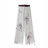 Graue Hosen für Damen Frühling- und Herbststil Drapierte bedruckte Jogginghosen Neue Freizeithosen Lockere gerade Hosen Sporthosen