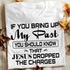 Wenn du meine Vergangenheit ansprichst, solltest du wissen, dass Jesus die Anklage fallen gelassen hat. Gold T-Shirt für Männer und Frauen
