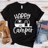 Neue Happy Camper bedruckte T-Shirts Damen einfarbige Shirts Rundhals T-Shirts Tops Outdoor Camping Cooles weiches Shirt
