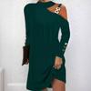 Damenkleid Langarm Etuikleid Frühling 2025 Elegant Schlicht Metallschnalle Neckholder Knopfkleid Damen Arbeits Minikleid