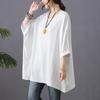 Sommer Baumwolle Hanf Bluse Künstlerisch Locker Lässig Fledermausärmel Großer Rundhalsausschnitt Oberteil T-Shirt für Damen