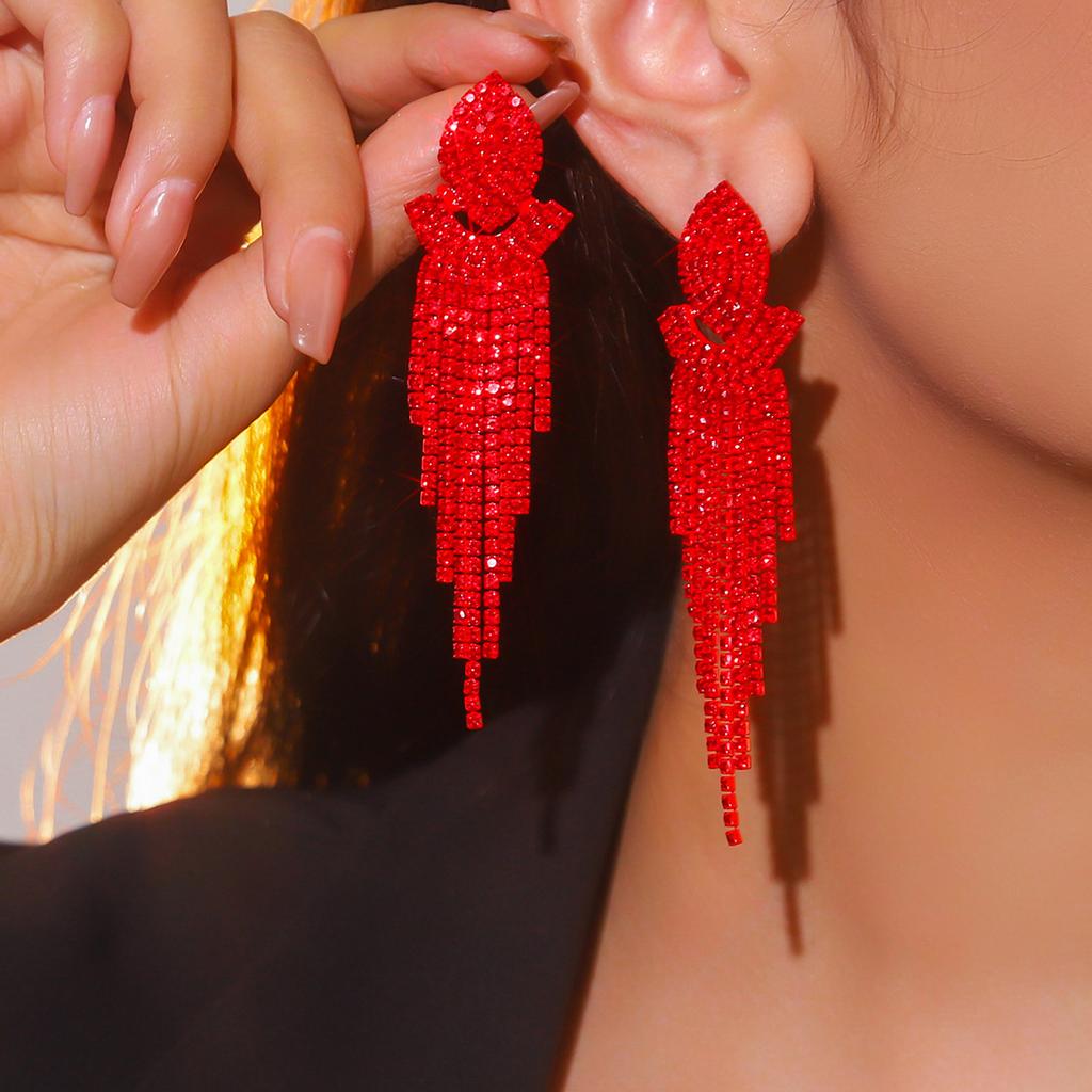 Rote lange Fransenohrringe Damen High-End exquisite Stecker und Ohrschmuck