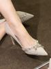 Nackte graue Niet High Heels Damen V-Ausschnitt 2024 neue dünne Ferse königliche Schwester sexy Damenschuhe spitz Lackleder Einzelne Schuhe Frühling und Herbst