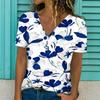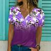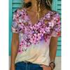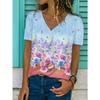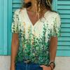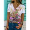 Damen Retro V-Ausschnitt Kurzarm T-Shirt, Nische Sommer Casual Locker T-Shirt