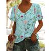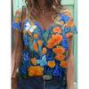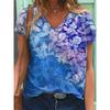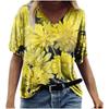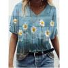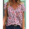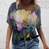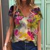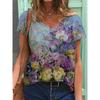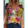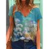 Sommerlandschaft Blumen Pflanzen 3D-gedrucktes Kurzarm-T-Shirt Damen Lockeres Kurzarm-Oberteil V-Ausschnitt T-Shirt