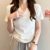 Sommer neue dünne Baumwolle Kordelzug Kurzarm T-Shirts für Damen Lässiges Slim T-Shirt Harajuku Studenten Y2k Crop Tops Streetwear