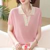 Sommer Kurzarm Mittleren Alters Damen Eisseide T-Shirt Top Revers Mode Pullover