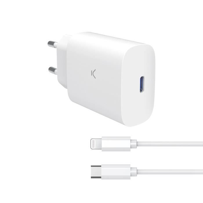 Adaptateur secteur - KSIX - 30W - Power Delivery - Câble Type C vers Lightning - Blanc