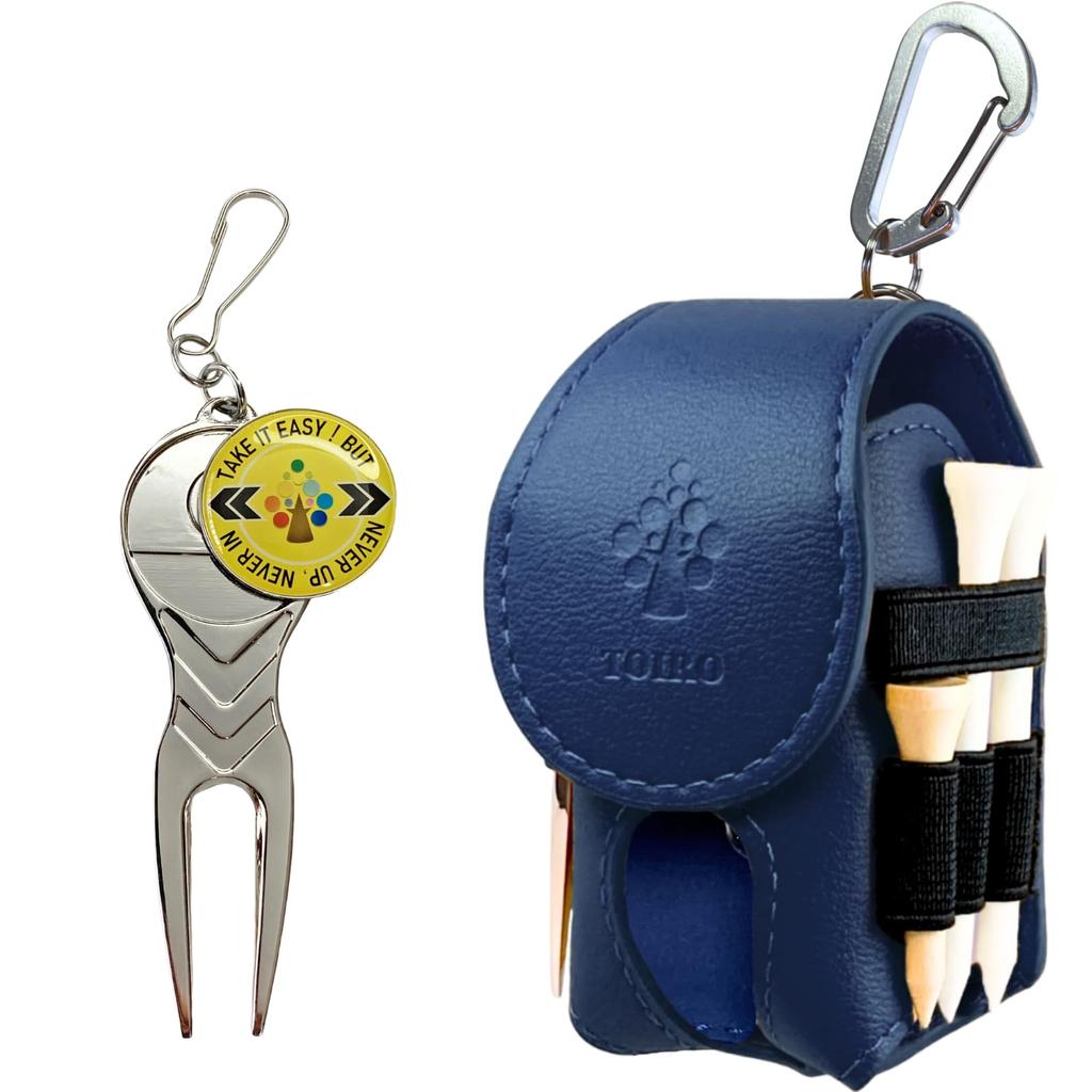 Golfballhülle, Ballbeutel, Golfmarker, Pitchgabel, Beweglicher Gürtelclip, Einfach zu befestigen und abzunehmen [Leichter Karabiner-Typ] (Navy blau)