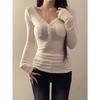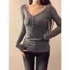 Entdecken Sie Eleganz und Komfort mit diesem Slim Fit Langarm-Unterhemd für Damen, perfekt für die Frühlings- und Herbstsaison. Dieses aus hochwertiger Baumwolle gefertigte Stück bietet eine weiche und atmungsaktive Passform. Das einfarbige Muster verleiht einen Hauch von Raffinesse, während die langen Ärmel für Wärme und Schutz sorgen.. Dieses Unterhemd mit schickem V-Ausschnitt kombiniert ein hochwertiges Design mit einem sexy Touch und ist somit eine vielseitige Ergänzung für jede Garderobe.