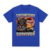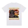 Beschneidungsüberlebender Lustige Katze Meme T-Shirts Herren Damen Vintage T-Shirt Lässig Baumwolle Kurzarm Übergroße T-Shirts Streetwear