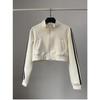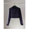 Damen Gestreifter Lässiger Cardigan Pullover - Slim Fit, Reißverschluss, Stehkragen, Herbststil