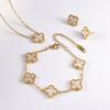3-teiliges Schmuckset mit 18 Karat vergoldetem Kleeblatt, lichtechte Halskette, Armband, Ohrringe und Schmuckset