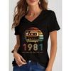 Damen 1984 Vintage 3D-gedrucktes Kurzarm V-Ausschnitt Kabelloses Damen T-Shirt