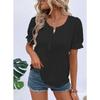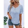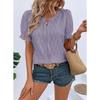 Frühling und Sommer Neues V-Ausschnitt T-Shirt Puffärmel Jacquard Damen Lässig Locker Kurzarm