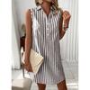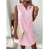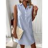 Ein ärmelloses V-Ausschnitt Hemdkleid mit Knopfleiste und Streifen für eine modische, lockere und lässige Frau