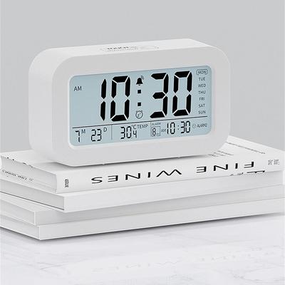 Batteriebetriebener LCD-Wecker, Temperatur, Datum, Woche, 3 Alarme, Hintergrundbeleuchtung, Schlummerfunktion, Tischuhr, Nachtsichtfunktion, 12/24-Stunden-Digitaluhr