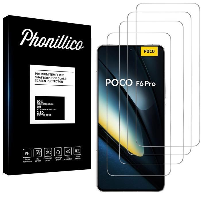 Gehärtetes Glas für Xiaomi Poco F6 Pro 5G [4er-Pack] Bildschirmschutzfolie Phonillico