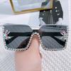 Integrated Sunglasses, Personalized Rimless Glasses, Large Frame One-Piece Diamond-Encrusted Sunglasses For Women