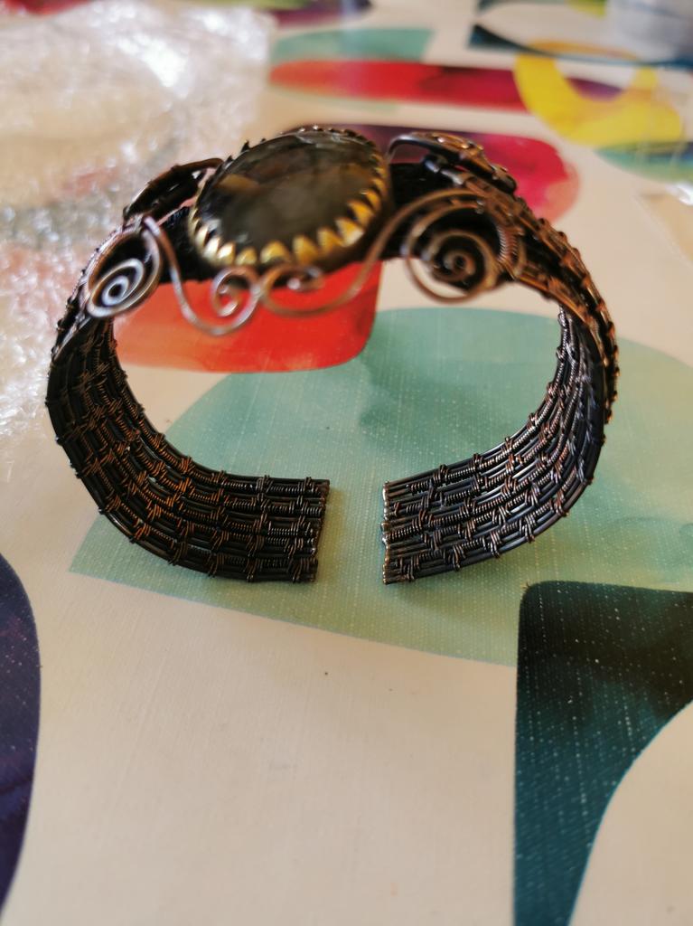 Labradorit Handgefertigter Kupferdraht Wickel Armreif Verstellbar u8K90
