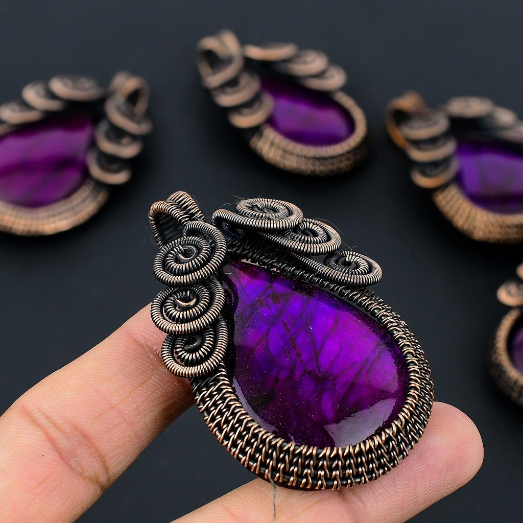 Rosa Labradorit Handgefertigter Kupferdraht Wickelanhänger Schmuck 2,64" T9L69