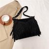 Brown matte design bag 2025 autumn new women's bag bohemian retro versatile messenger bag fringed bag