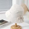 Women's Bucket Hat Foldable Fisherman Cap Korean Style Bow Plaid Spring Summer Sunshade Retro Fashion Cloth Simple Lady Hat New