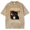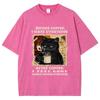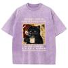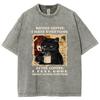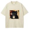 Schwarzes Glückskatze Kaffeetrinken Print Unisex T-Shirt Locker Übergröße Oversized Kurzarm American Vintage Stree