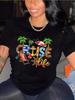 Weißes vielseitiges Cruise Life 3D-Druck Rundhals-T-Shirt lässig kurzärmelig Damenbekleidung Rundhals Damenbekleidung