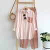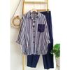 Damen Sommer Locker Übergröße Pendleranzug Gestreiftes Freizeithemd + Hose Dünnes Bequemes Zweiteiliges Set
