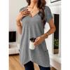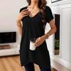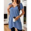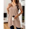Frühling und Sommer Neues Damen Einfarbig V-Ausschnitt Tasche Lässig Vielseitig und Modisch T-Shirt Top