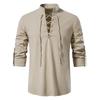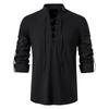Baumwoll- und Leinen Langarm Freizeit Hemd mit Stehkragen