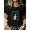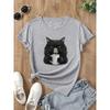 Niedliche Kaffeetrinkende Katze Damen T-Shirt Sommer Mode Kurzarm T-Shirt Tee Tops Rundhals Lässiges T-Shirt Damenbekleidung