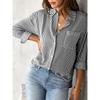 Spring Summer Polo-neck Striped Printed Blouse Female Long Sleeve Loose Casual Fashion All-match Top Women Vintage Elegant Shirt