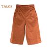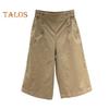Damen Cropped Hosen Elastischer Hoher Bund Sommer Dünne Freizeithose mit Taschen Einfarbig Lockere Passform Weites Bein Haremshose