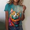 Street Pattern Girl Sommer Casual Kurzarm 3D-Druck Damenmode Katze Damen T-Shirt