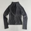 Damen Slim Fit Elastisches Langarm-Sweater-T-Shirt mit Stehkragen und unsichtbarem Reißverschluss