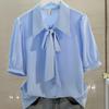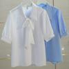 Werten Sie Ihre Sommergarderobe mit dieser eleganten Chiffon-Schluppenbluse auf, die für die moderne berufstätige Frau entworfen wurde.. Gefertigt aus leichtem Polyestermaterial, bietet es Komfort und Atmungsaktivität für warme Tage.. Das Oberteil hat kurze Ärmel für einen entspannten, aber dennoch gepflegten Look, während die raffinierte Schleifenknoten-Dekoration einen Hauch von femininem Charme verleiht.. Dieses vielseitige Hemd ist perfekt sowohl für Büroumgebungen als auch für Freizeitausflüge und vereint nahtlos Stil und Funktionalität.