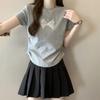 Damen Sommer Besticktes Slim-Fit T-Shirt mit Taillen- und Seitenfalten, Koreanischer Stil, Rundhalsausschnitt, Vielseitiges Baumwoll-Top