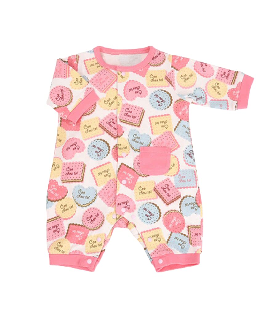 A baby allover romper with a cute design. It has a lively pattern all over, making it cute even from the back♪ Accented with pockets in colors that match the fabric. This item is not only cute but also stylish! Snap buttons make changing clothes and diapers a breeze♪ *The size of the goring may vary depending on the production lot *(About the material) 100% cotton
