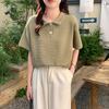 2025 New Summer Waffle Polo Shirt Apricot Hong Kong Style Loose Age-reducing Short-sleeved T-shirt Women's Inner Top