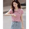 Damen French Sweet Besticktes Polo-Shirt mit rosa Schulterpartie und pfirsichfarbenem Stickmuster, Sommer-T-Shirts