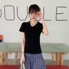 T-Shirt für Damen im Hongkong-Stil, einfarbig, kurzärmlig, Sommer, neu, vielseitig, Revers, geknöpft, Poloshirt, halbärmliges Oberteil, Sommer