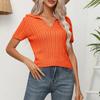 Sommer Damen Tops Kurzarm Pullover Strickwaren Einfarbig Revers Strickwaren