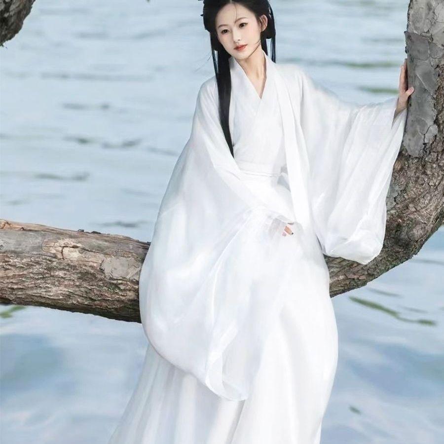 Hanfu im chinesischen Stil für Frauen in den Wei- und Jin-Dynastien, weiße weite Ärmel, eleganter und magischer Mädchenanzug