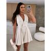 Ein neues Sommer-Einfarbiges Zweireiher V-Ausschnitt Ärmelloses Anzugkleid mit einer taillierten Taille