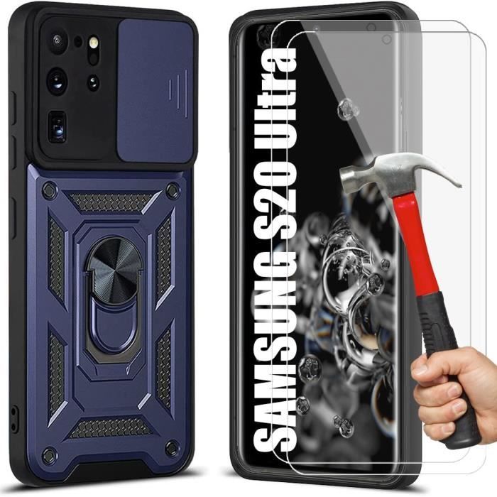 Coque de Téléphone - BOOLING - pour Samsung S20 Ultra - 2 Verres Trempés - Coque Antichoc - Bleu Marine