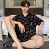 2025 Sommer Dünne Eis Seide Pyjamas Herren Bequem Kurzarm Übergröße Hauskleidung Nachtwäsche Anzug Teenager Freizeit Outdoor Kann Draußen Getragen Werden