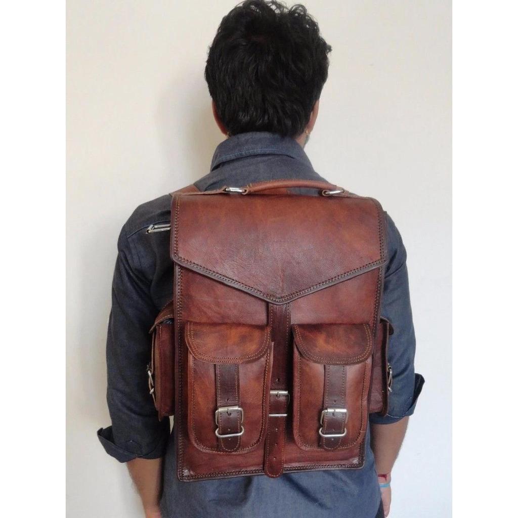 Echter Vintage Brauner Leder Rucksack Umhängetasche Herren Schulterrucksack Tasche