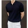 Sommer Eis Seide Herren Polo Kurzarm T-Shirt Dünnes Hemd Mode V-Ausschnitt Gestreift Gestricktes Unterhemd Herren